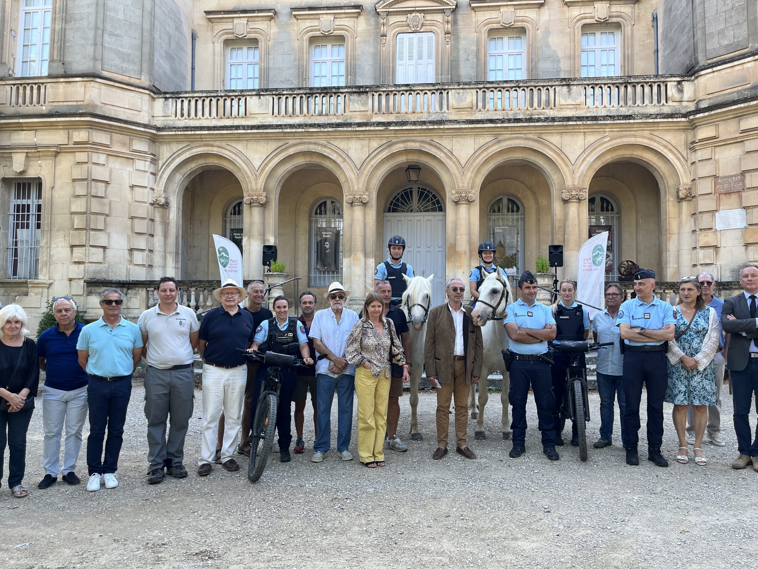 Lundi 21 juillet, au pied du château de Montauban à Fontvieille, élus, représentants de l’État et forces de l’ordre se sont réunis pour lancer la 3e édition de la Garde montée des Alpilles, en présence de nombreux maires du territoire, du représentant de la préfecture de police et de la Gendarmerie nationale.